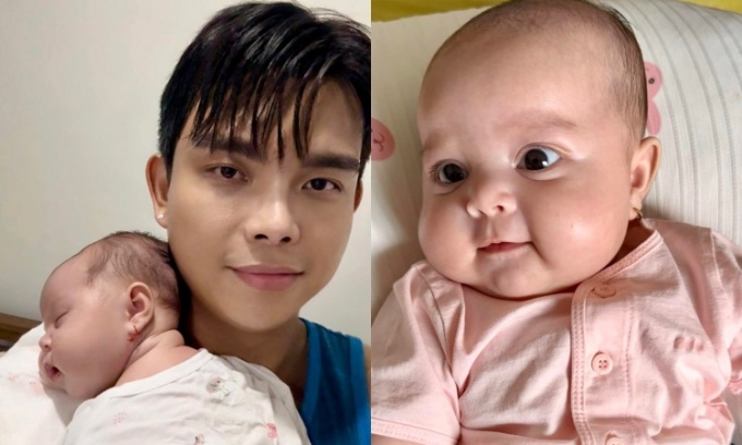 Nhà thiết kế Đỗ Long, 41 tuổi, làm bố đơn thân của con gái hai tháng tuổi, nói hạnh phúc khi trải nghiệm chăm trẻ sơ sinh.