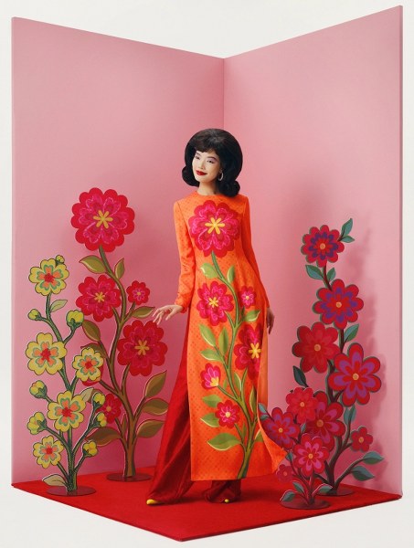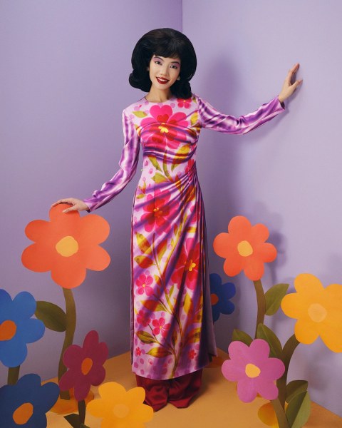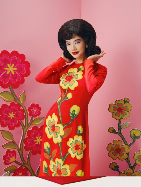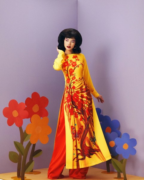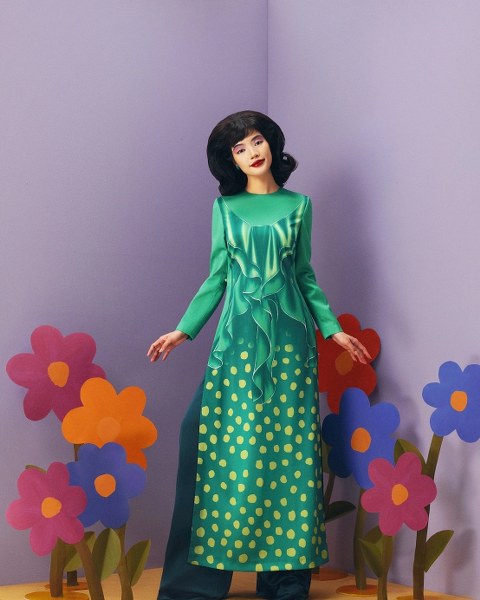 Áo dài được làm mới qua nghệ thuật trompe l'oeil tạo ảo ảnh ba chiều.