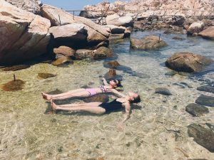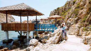 Nơi đây có hai bờ biển trong vắt một bên nóng, một bên lạnh được phân biệt bởi bãi cát trắng mịn tự nhiên nằm giữa. Bạn có thể lựa chọn thư giãn trong dòng nước ấm nóng hoặc đằm mình dưới làn nước mát lạnh ở bờ bên kia