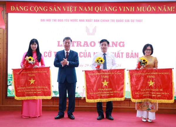 PGS.TS. Vũ Trọng Lâm, Giám đốc - Tổng Biên tập, Chủ tịch Hội đồng Thi đua - Khen thưởng Nhà xuất bản trao Cờ thi đua của Nhà xuất bản cho các tập thể
