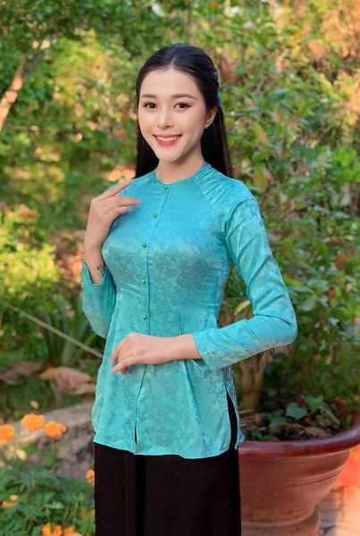 Cô chọn trang phục áo dài cách điệu, xách túi đan thủ công trong một lần dạo chơi. Nhiều người nhận xét cô có gương mặt ưa nhìn, phúc hậu.