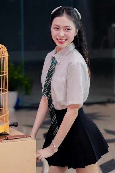Người đẹp toát lên nét trong trẻo với váy áo phong cách nữ sinh.
