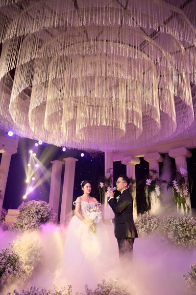 Đám cưới được cô dâu chú rể lên kế hoạch chuẩn bị từ 2 tháng trước, với số lượng hoa rất lớn và công phu, gồm hơn 1 tấn 5 hoa và 3 tấn bối cảnh, tiểu cảnh để xuất hiện. Tất cả đều được chỉ đạo bởi nhà thiết kế Lâm Lâm và hơn 100 nhân sự.