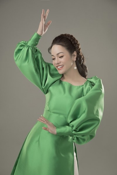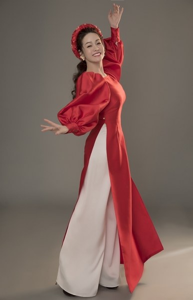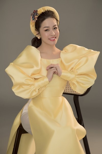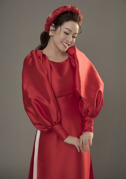 Stylist Tân Đà Lạt lựa chọn cho Nhật Kim Anh những bộ áo dài cách điệu của NTK Thủy Nguyễn, mang đến vẻ sang trọng mà vẫn tươi trẻ.
