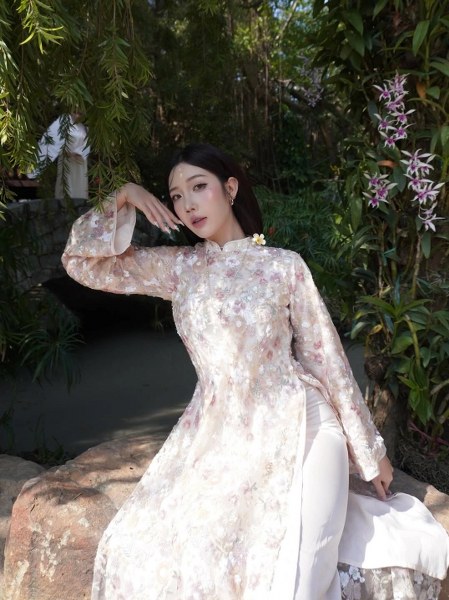 Từ đầu năm tới nay, nhiều học sinh, sinh viên rủ nhau diện áo dài trên phố, tạo dáng trước ống kính. Không khí Tết được họ truyền tải qua những phụ kiện đặc trưng như bó hoa lay ơn, thược dược, bao lì xì, cành hoa đào, giỏ quà Tết. Dưới góc nhìn của giới trẻ, áo dài trở nên gần gũi, tươi vui với bảng màu đa sắc, kiểu dáng cách tân đa dạng.