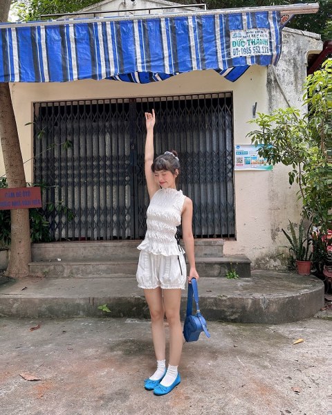 Giá thành rẻ và kiểu dáng lạ mắt của thiết kế là một trong những yếu tố thu hút nhiều học sinh, sinh viên. Đa số chọn cách phối trẻ trung và năng động, kết hợp với áo quây, áo hai dây, giày đế thấp (Ảnh: Instagram Ngo Ngoc Anh)