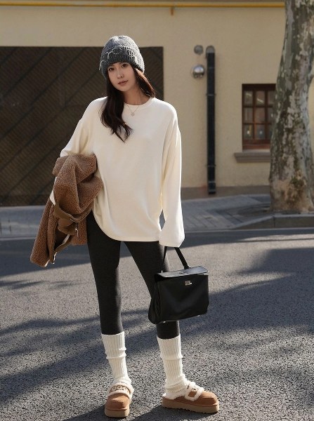Legging và "giày xấu" có thể đi cùng nhau, tạo nên bộ cánh dạo phố phóng khoáng.
