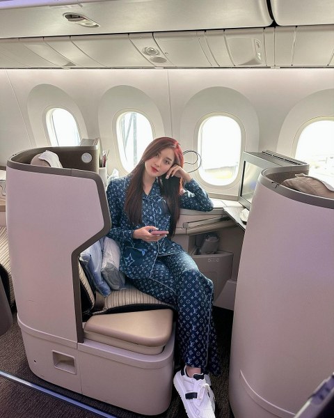 Ngoài bộ của Dior, Huyền My còn có đồ ngủ của Louis Vuitton giá hơn 4.250 USD (gần 100 triệu đồng), được cô diện ra sân bay cùng sneakers.