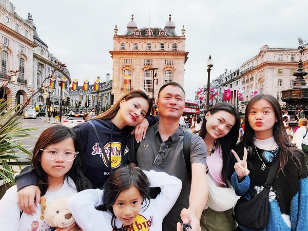 Bức ảnh gia đình đông đủ mà Vũ Thu Phương chia sẻ gần đây là dịp đưa con gái lớn - Kim Ngọc (thứ hai từ phải sang) đến Anh du học, hồi giữa năm 2023.