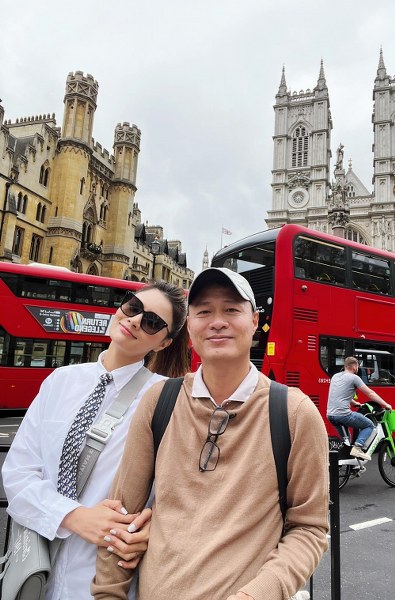 Vũ Thu Phương và chồng cũ trong chuyến du lịch nước ngoài năm 2023.
