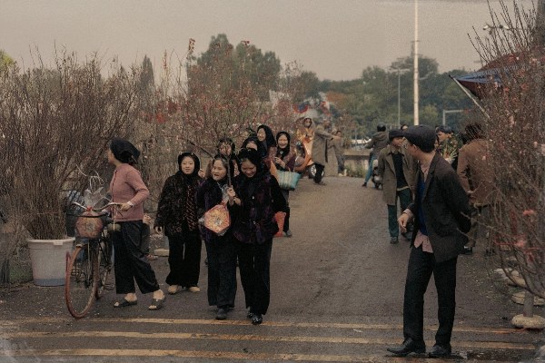Giữa nhịp sống vội vã ngày nay, họ chọn quay về những ngày Tết xưa. Êkíp tái hiện chợ quê miền Bắc với hình ảnh cành đào, cây quất, bánh chưng xanh.