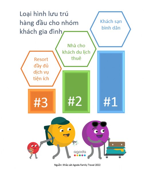 Đối với du lịch cùng gia đình hoặc du lịch theo nhóm bạn, du khách quốc tế ngày nay tìm kiếm các chuyến du lịch có nhiều giá trị trải nghiệm hơn. Khách sạn bình dân (Budget Hotel), nhà cho khách du lịch thuê Agoda Homes và Khu nghỉ dưỡng đầy đủ tiện nghi (Inclusive Resorts) được coi là ba lựa chọn lưu trú được các nhóm này quan tâm cân nhắc hàng đầu.