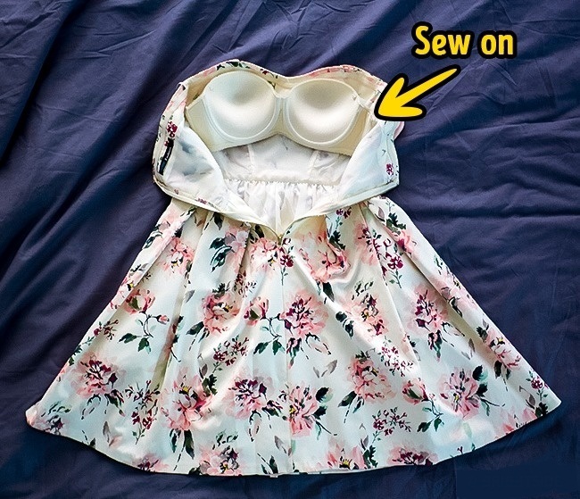 Để chọn áo lót cho váy quây ngực, đặc biệt là váy hở lưng không phải là điều dễ dàng. Có một cách rất khôn ngoan để mặc áo lót quây ngực không bị tuột xuống hay trồi lên khi mặc váy quây là bạn hãy may cố định áo lót vào mặt trong của váy.