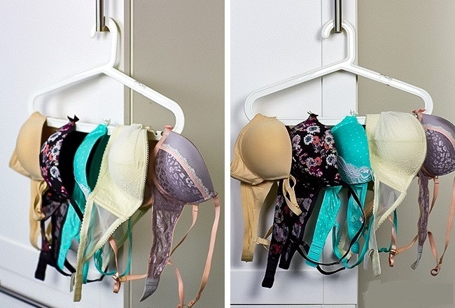 Cách để cất giữ áo lót thông minh và gọn gàng nhất là móc chúng trên một chiếc móc áo. Như thế sẽ không khiến áo lót bị biến dạng.
