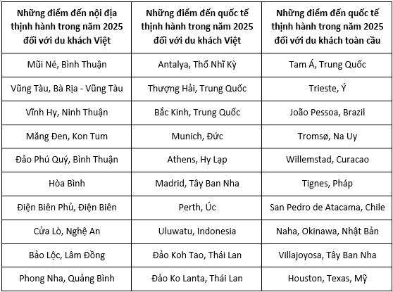 Những điểm đến quốc tế thịnh hành trong năm 2025 đối với du khách Việt