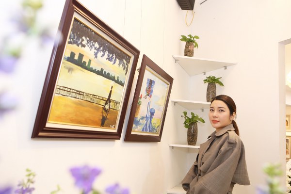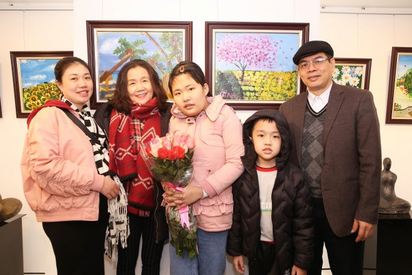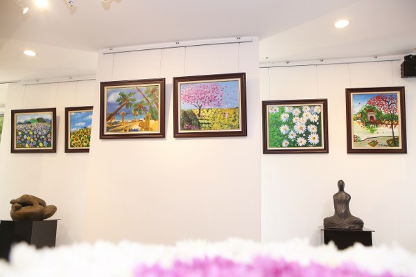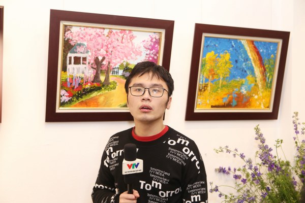 Hoạ sĩ Lương Giang tại buổi triển lãm