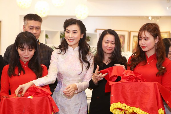 Á hậu Yan My đến tham dự triển lãm