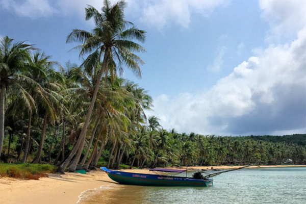 Sau 30 phút đi tàu từ cảng An Thới, bạn sẽ đến đảo Hòn Thơm để tận mắt ngắm nhìn khung cảnh của một làng chài ven biển. Hình ảnh người dân ngồi thong thả đan lưới cạnh những ngôi nhà tạm bợ bên bờ biển sẽ cho bạn cảm giác thật yên ả.
