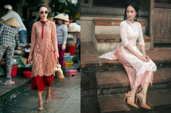 Mẫu áo dài ren cách tân, mang đến phong cách nhẹ nhàng, đáng yêu. Vẫn giữ được nét trẻ trung hiện đại của áo dài, các mẫu phối ren ôm sát các đường nét của người mặc, có thể phối với váy xòe hoặc quần ống ôm ngắn.