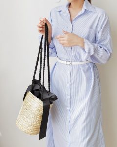Tuy nhiên túi cói thay vì mang đáng mềm mại như những dáng bucket cũ thì lại có dáng hộp cứng cáp, phần quai rút ngắn được để bên trong giúp các nàng có thể "giấu" phần dây này.