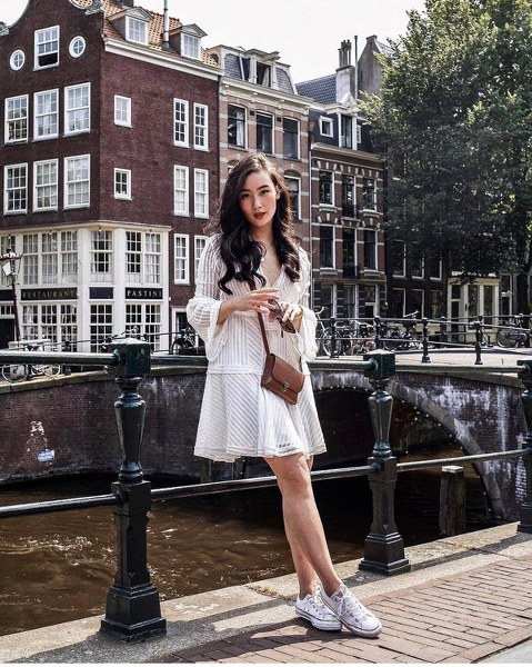 Những chiếc đầm xinh xắn họa tiết chấm bi, kẻ sọc hay sắc trắng đơn giản sẽ giúp bạn gái trẻ trung hơn khi xuống phố.