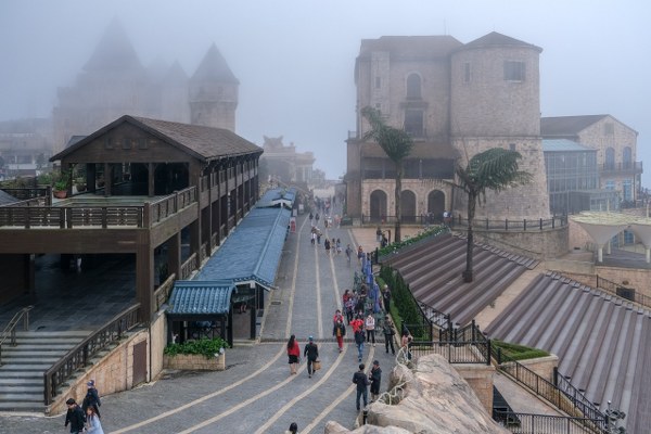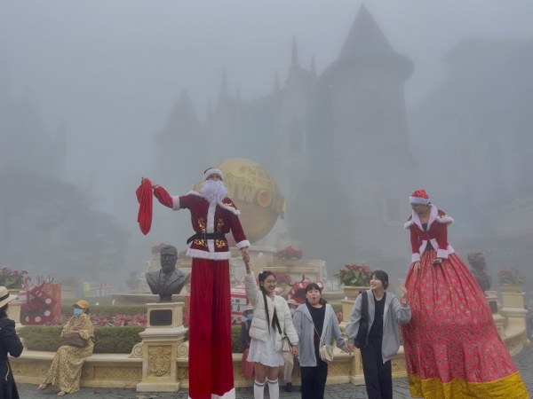 Những cây thông Giáng sinh đã sớm có mặt trong những tòa lâu đài lát đá tại Làng Pháp trên mây, cùng ánh đèn và hàng trăm quả cầu lấp lánh. Nhiều du khách thực sự ngạc nhiên khi có thể đón những cơn gió se se của mùa đông, đủ lạnh để người ta chủ động tìm kiếm sự ấm áp trong không gian lễ hội và từ những người thân yêu, và đón những làn sương mờ ảo để cảm thấy như đang đứng giữa những tầng mây.
