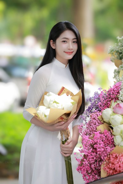 Top 10 Người đẹp xứ Tuyên 2022 Nông Thị Hằng gây chú ý với nhan sắc xinh đẹp, tinh khôi trong tà áo dài trắng đầu thu.
