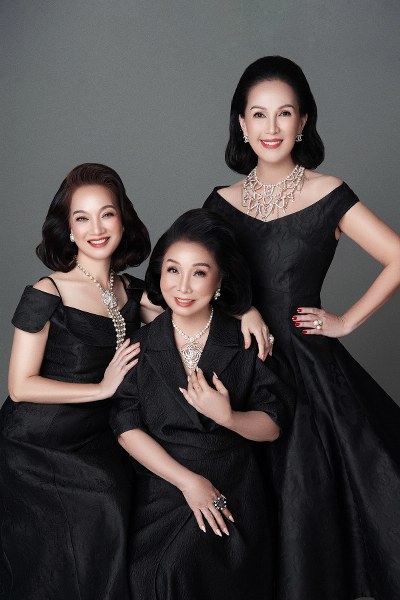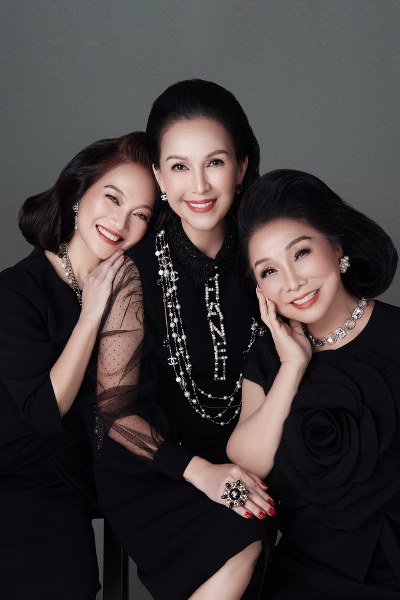 NSND Bạch Tuyết, NSND Lê Khanh và diễn viên Diễm My khắc họa hình ảnh sang trọng với thiết kế gam đen, trắng của Đỗ Mạnh Cường.