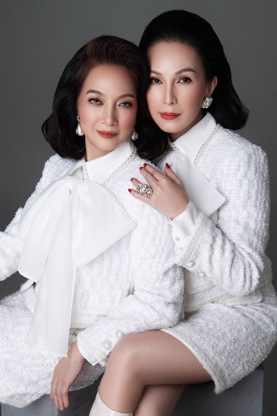 Hai nghệ sĩ 6X cùng giấu đường cong trong set đồ dáng rộng màu trung tính, kết hợp trang sức ngọc trai layer cầu kỳ.