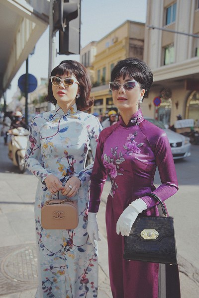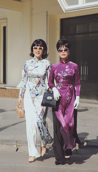 Thiết kế thêu tay tinh xảo trên nền vải dày dặn mang đến cho Chiều Xuân nét quý phái, sang trọng của các quý bà còn mẫu áo voan in hoa mang đến cho Quỳnh Hoa sự trẻ trung, đài các giống tiểu thư Sài Gòn xưa.