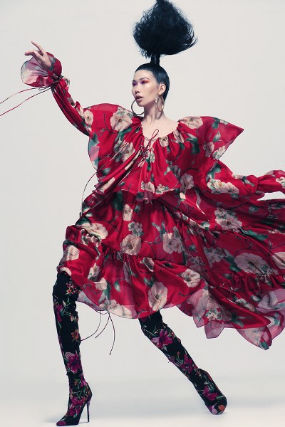 Nhà thiết kế khẳng định sự sáng tạo và cái tôi riêng biệt qua cách pha trộn nhiều hoa văn nổi bật trên cùng một set đồ.