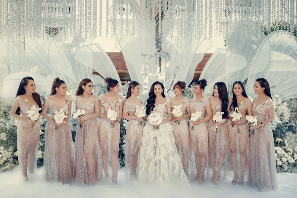 NTK Lâm Lâm cho biết, để may đo và thiết kế riêng cho đám cưới như "bước ra từ cổ tích" này, bản thân anh đã bỏ ra hàng ngàn giờ làm việc của rất nhiều thợ thủ công chuyên nghiệp, cẩn thận, tỉ mỉ đến từng chi tiết nhỏ.