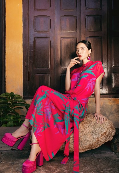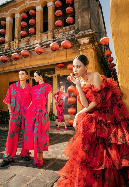 Bộ đôi chọn tông đỏ rực rỡ làm chủ đạo bên cạnh các màu sắc bay bổng như hồng, xanh dương, xanh lá, vàng, cam…