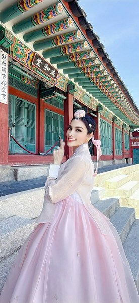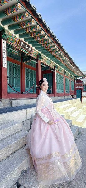 Cô cũng chia sẻ kinh nghiệm mặc Hanbok khi du lịch Hàn Quốc, Hanbok thường được thuê và mặc tại các điểm du lịch nổi tiếng như Gyeongbokgung, Changdeokgung, làng cổ Bukchon Hanok, hay phố cổ Insadong. Đây là những nơi có bối cảnh cổ kính, phù hợp để hòa mình vào không gian lịch sử.
