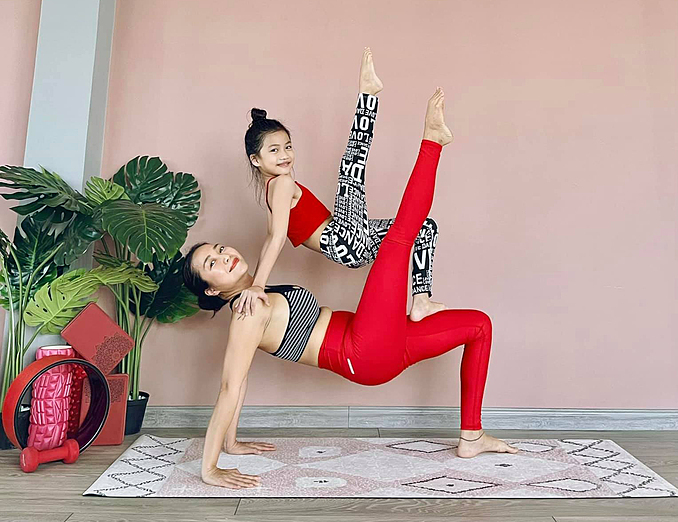 Ốc Thanh Vân cho biết, cô không ép mà chỉ động viên và tạo cho con niềm vui tập luyện bằng cách sắm trang phục đôi mà cả hai mẹ con cùng yêu thích hay cho con tự tìm tư thế rồi cùng tập. Cô nhờ tới sự hướng dẫn của cô giáo để đảm bảo tập đúng và an toàn cho cả hai mẹ con. "Yoga là khổ luyện nên nếu muốn chinh phục tư thế khó thì chắc chắn phải đổ mồ hôi. Trên người hai mẹ con tôi có nhiều vết lủng giống nhau tại cùi chỏ, dưới bàn chân… và tất cả hiện đã chai luôn rồi", nữ diễn viên kiêm MC kể.