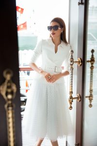 Cách phối với loạt váy voan tinh tế, kết hợp cùng với kính mát và một mái tóc xoăn nhẹ nhàng đem lại tổng thể rất thu hút