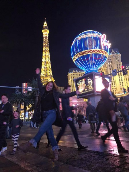 Khánh Thi để lộ vòng hai lùm lùm khi chia sẻ hình ảnh đi du lịch ở Mỹ