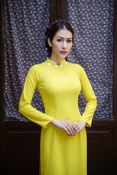 Hoa hậu Việt Nam qua ảnh 2012 Phan Thu Quyên đằm thắm, dịu dàng khi diện áo dài của NTK An Nhiên.