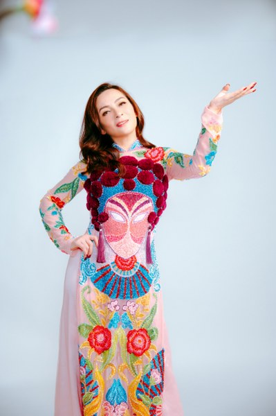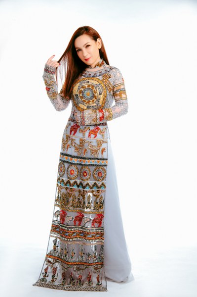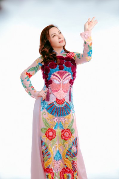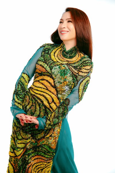 Ca sĩ Phi Nhung tự tin làm mẫu, giới thiệu sưu tập áo dài đính kết cầu kỳ của nhà thiết kế Bảo Bảo sau khi giảm cân thành công.
