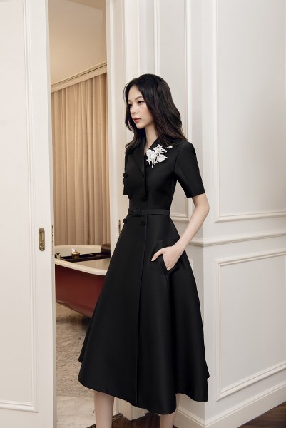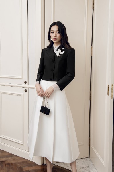 Suit thanh lịch hay các kiểu phối đồ gồm áo blazer chiết eo và chân váy midi tiếp tục được Hà Thanh Việt khai thác ở bộ sưu tập thu đông.
