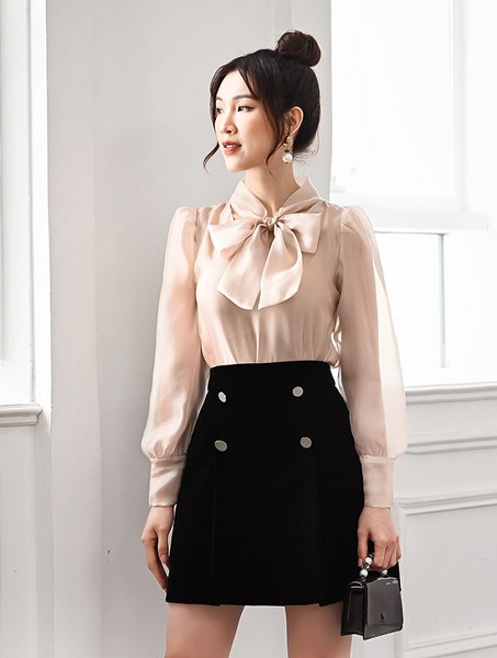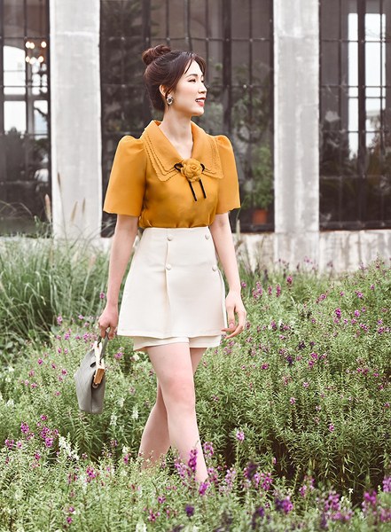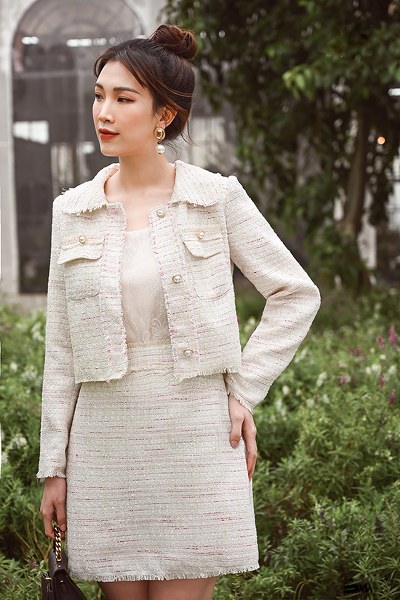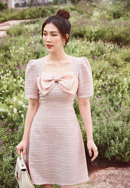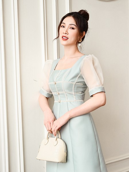 Hoa hậu Áo dài Phí Thùy Linh khắc họa hình ảnh nhân viên văn phòng thanh lịch với những thiết kế nữ tính.