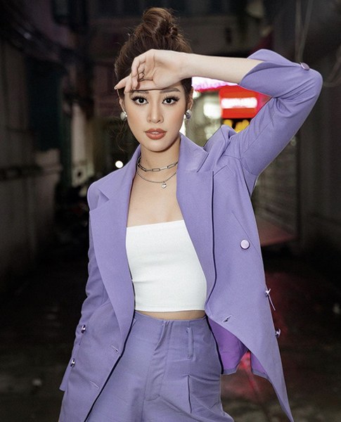 Ngoài suit thanh lịch, Khánh Vân còn mix áo crop-top cùng những mẫu áo jacket đồng điệu sắc màu với quần âu.