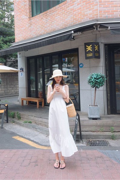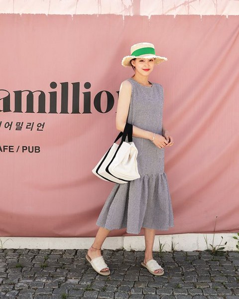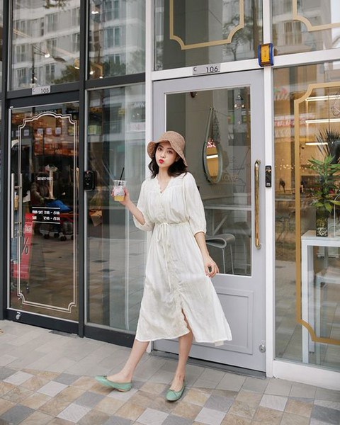 Phụ kiện bằng chất liệu thiên nhiên kết hợp cùng dáng váy cổ điển sẽ mang lại nét nhẹ nhàng cho bạn gái trong mùa hè.