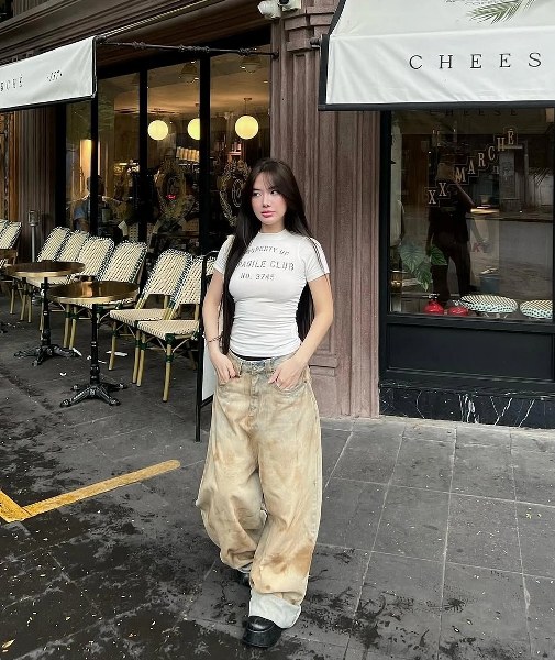 Áo phông in slogan, bốt chunky, túi đeo vai nằm trong số những món đồ phù hợp khi phối kiểu quần này.