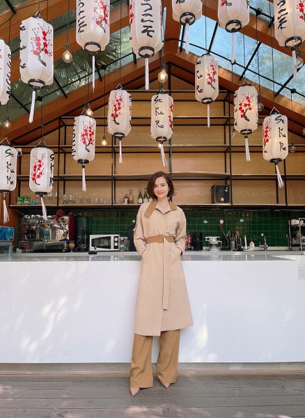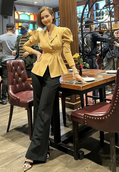 Với cùng một màu sắc, cô chọn những kiểu dáng khác nhau hoặc tạo điểm nhấn ở một vài chi tiết như cách điệu ở cổ áo, ống quần.