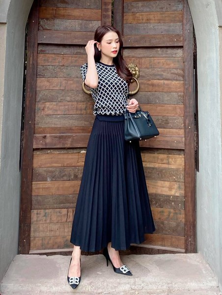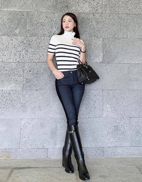 Áo len ngắn ôm sát body giúp Sam tôn lên đường cong quyến rũ, thân hình thon thả. Với cách mix đồ tối giản này, người đẹp nhấn nhá bằng những chiếc túi xách hàng hiệu để tăng đẳng cấp.