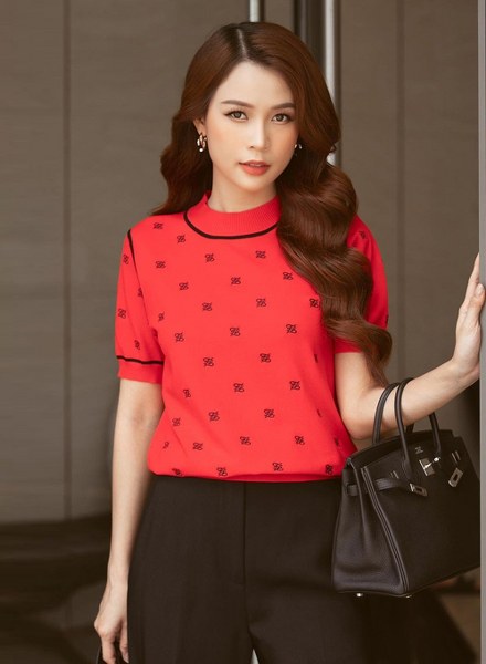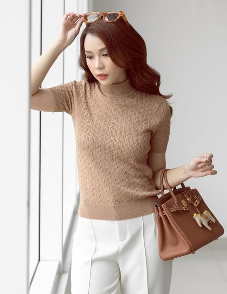 Nữ diễn viên, MC Sam có cả loạt kiểu áo dệt kim tay ngắn, giúp cô dễ dàng phối đồ công sở đa dạng thời tiết.