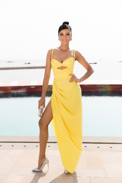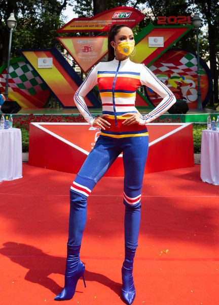 Nàng hậu đầu tư trang phục phù hợp tính chất từng sự kiện. Khi lên thảm đỏ một chương trình về thể thao, cô diện đồ rất sporty.