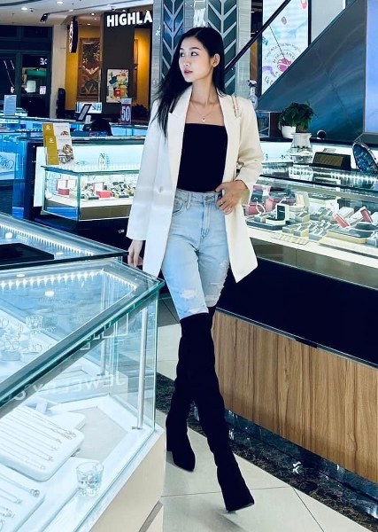 Võ Lê Quế Anh - Miss Grand Vietnam 2024 - thích mặc crop top tôn eo thon hoặc phối sơ mi, quần jeans theo phong cách năng động.