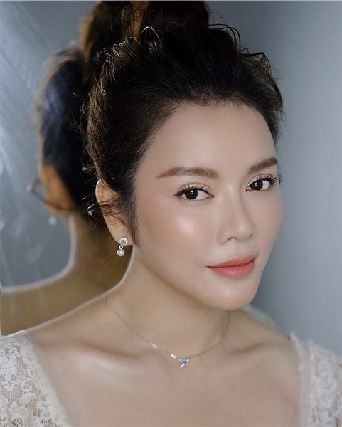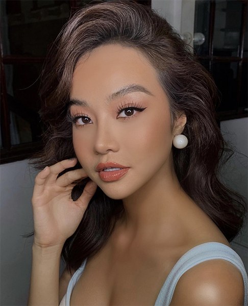 Chọn trang phục tạo khối ấn tượng nên Tường Linh sử dụng hoa tai ngọc trai cỡ nhỏ để mang lại sự hài hòa cho tạo hình.